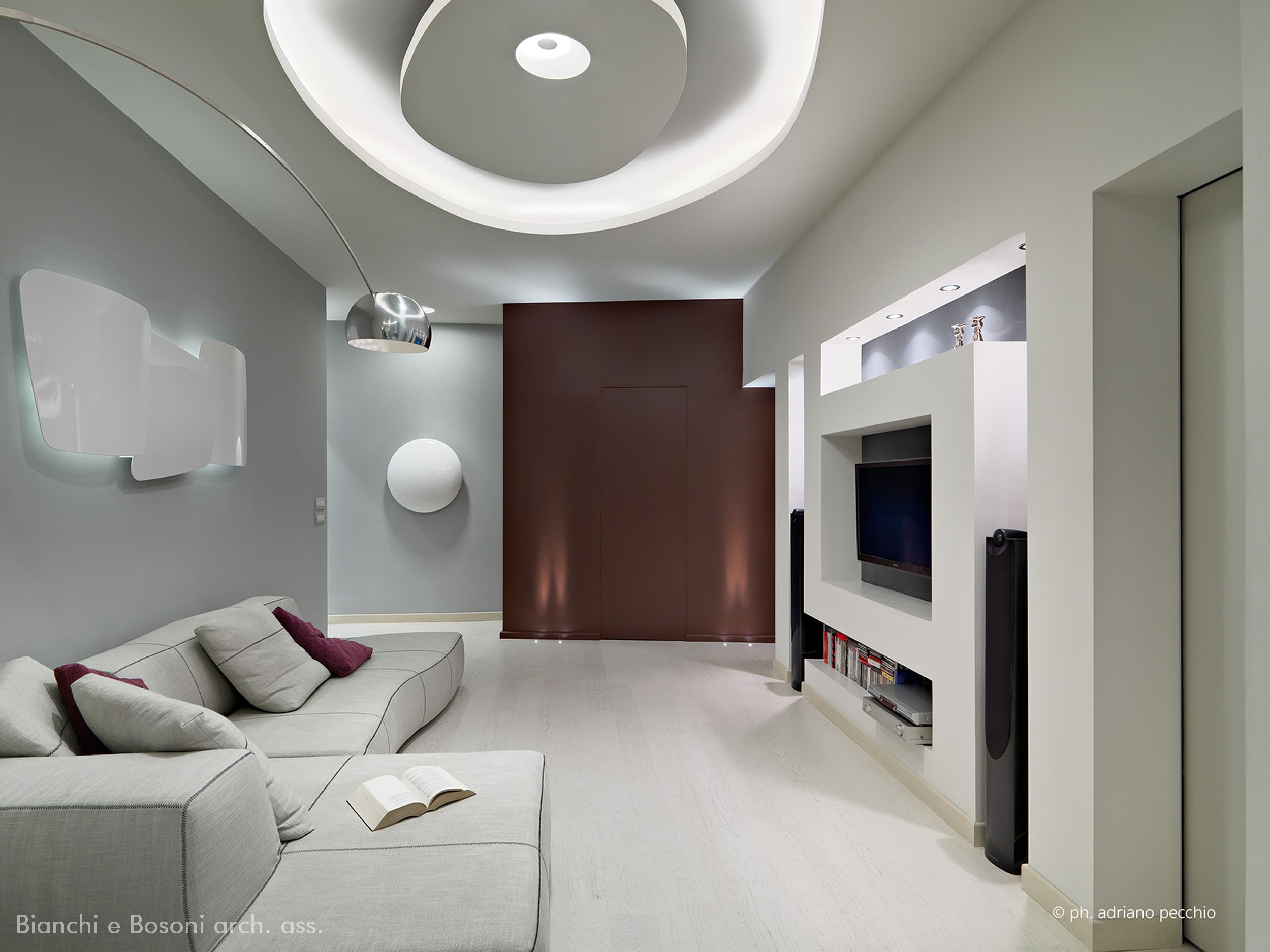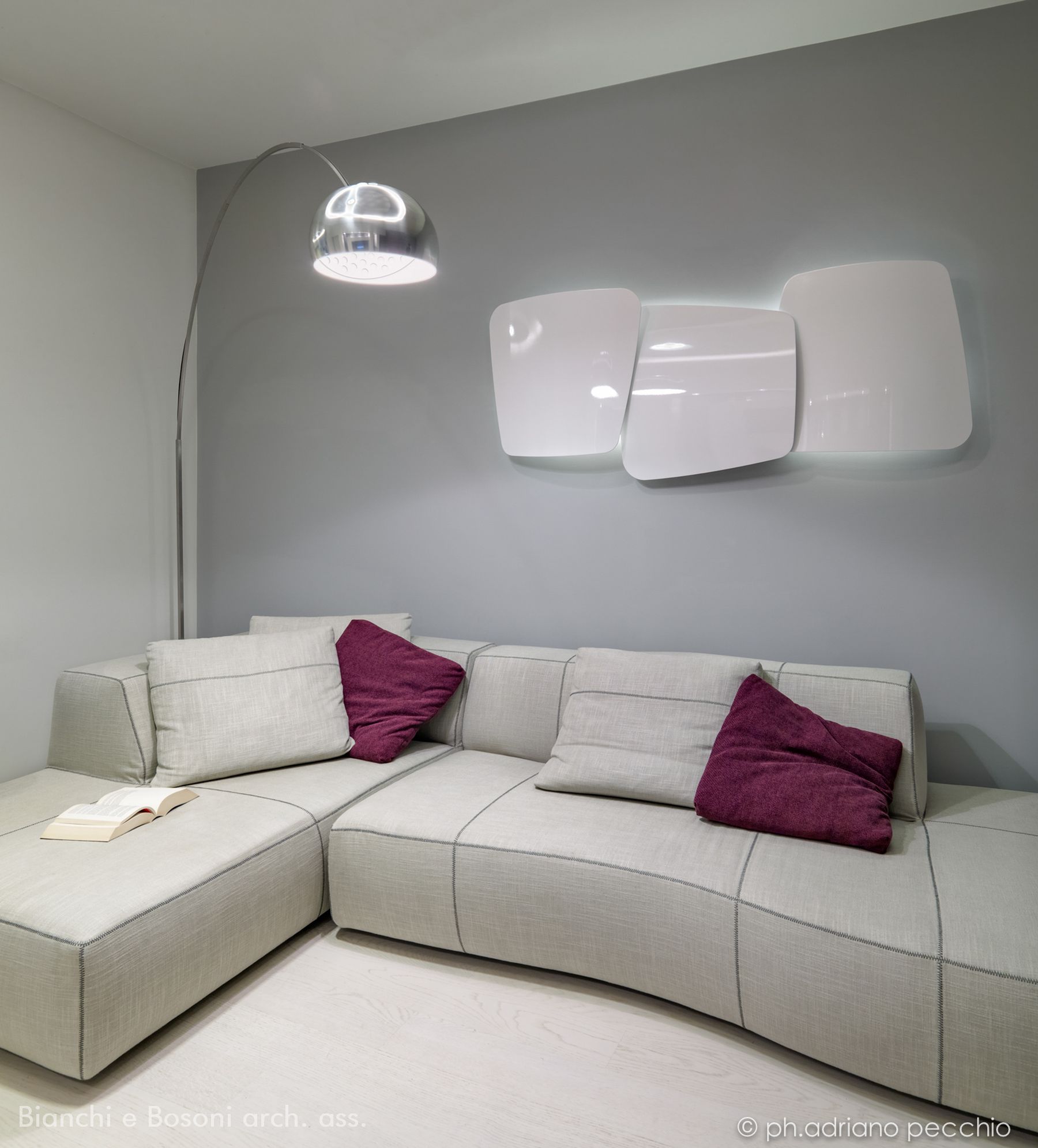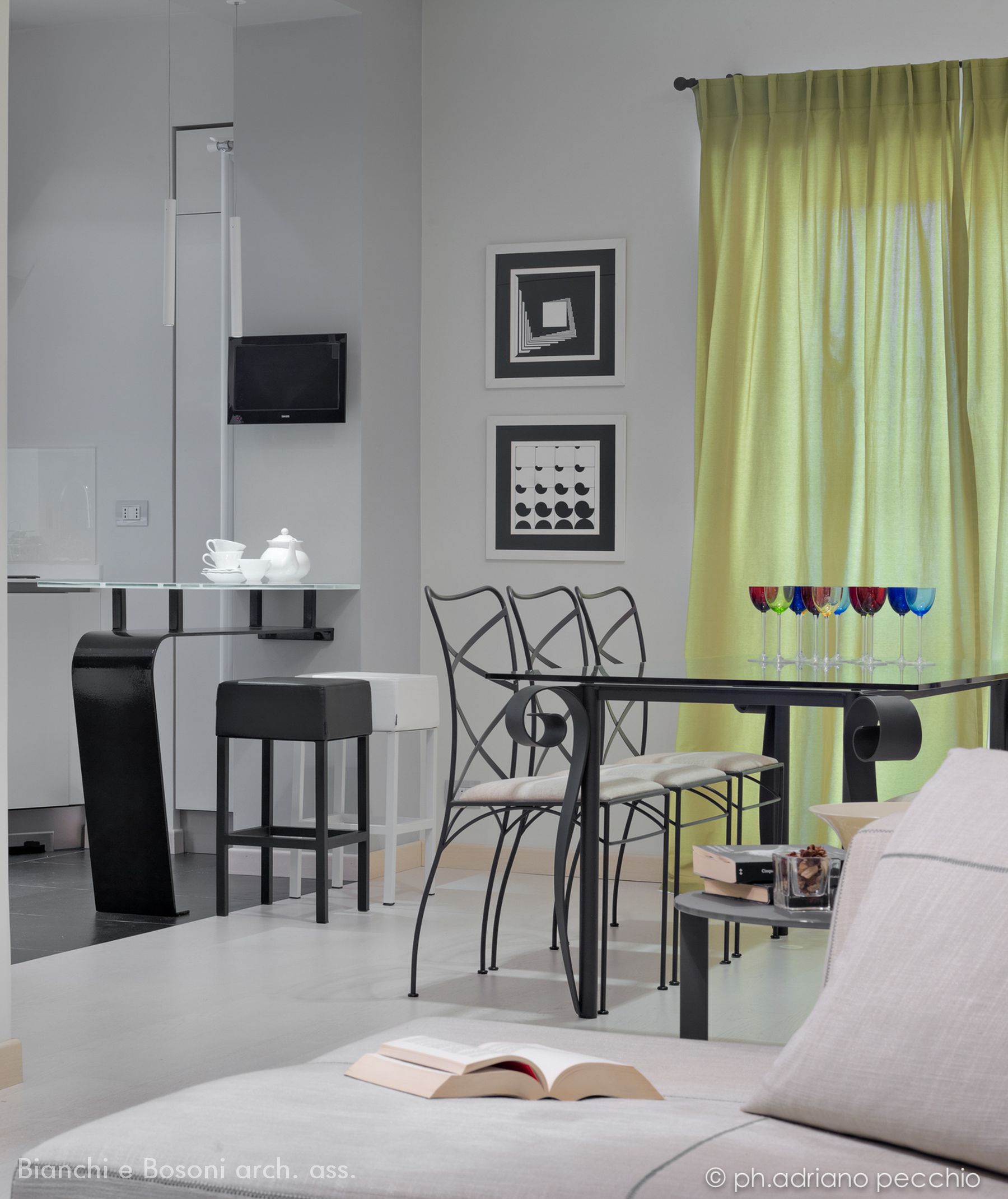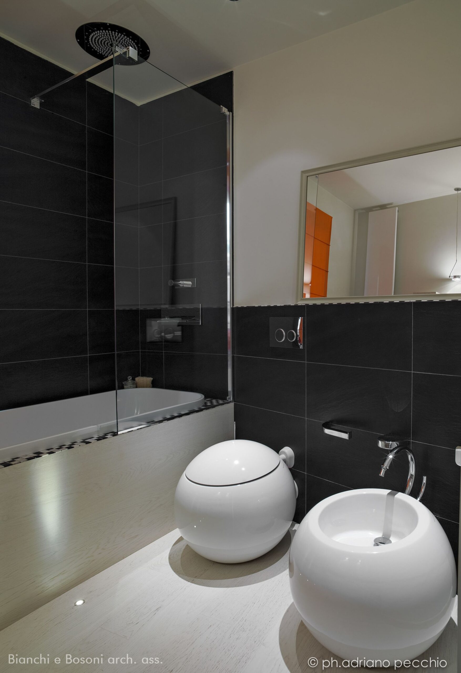 Intervento: Ristrutturazione interna / Superficie: 100 mq / Situazione: Completato / Sintesi del lavoro: Modifica della distribuzione interna e ottimizzazione degli spazi, attraverso la demolizione di tramezze e l’ampliamento della zona giorno. Creazione di secondo bagno e cabina armadio / Radiatori: Anthrax / sanitari: Catalano / lavabo: Antonio Lupi / rubinetteria: Bossini, Fantini / Piano lavabo: Piba marmi / Piatto doccia: Makro / Vasca: Kos / rivestimenti: Mutina, Casa Più, Le Cere / pavimentazione: Margaritelli /porte: Rimadesio, Scrigno essential / Cucina: Veneta cucina / Arredi su misura – progetto: Mobile lavabo in acciaio spazzolato, comodini letto in ferro laccato, bancone snack in ferro laccato e vetro / Impianti: Aspirazione polveri centralizzato – General d’aspirazione
