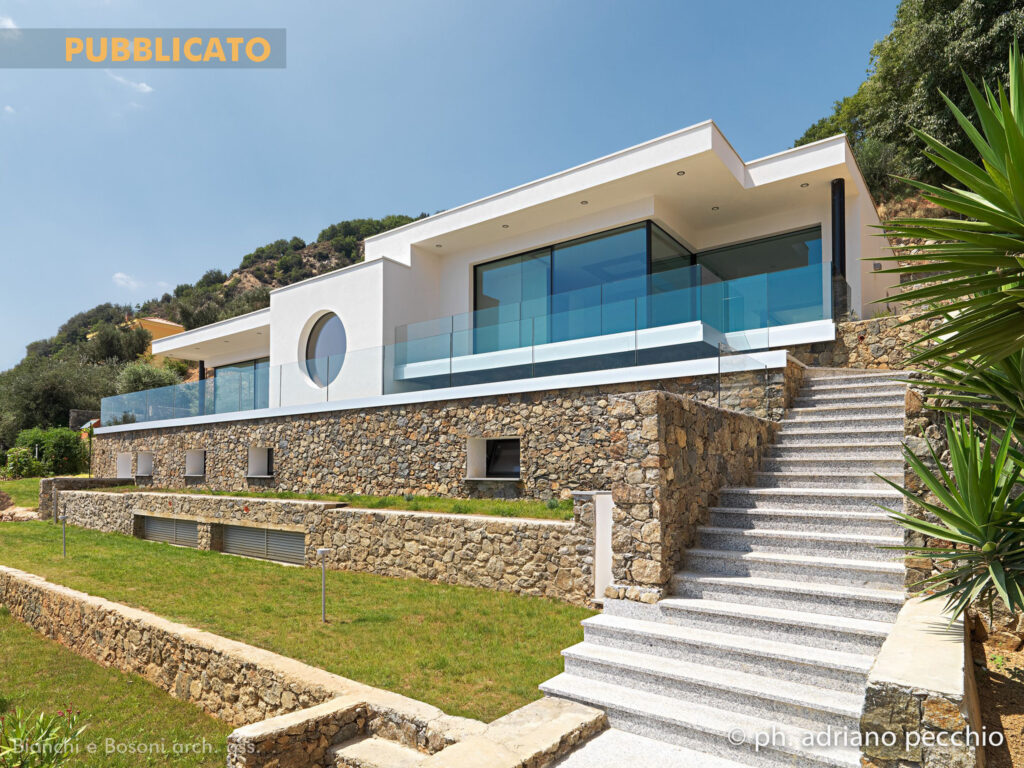 Situata sulla linea di mezza costa a pochi passi dal centro di Bergeggi, la villa si affaccia completamente sul mare Ligure.