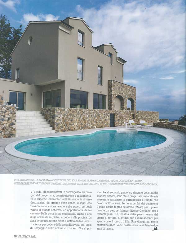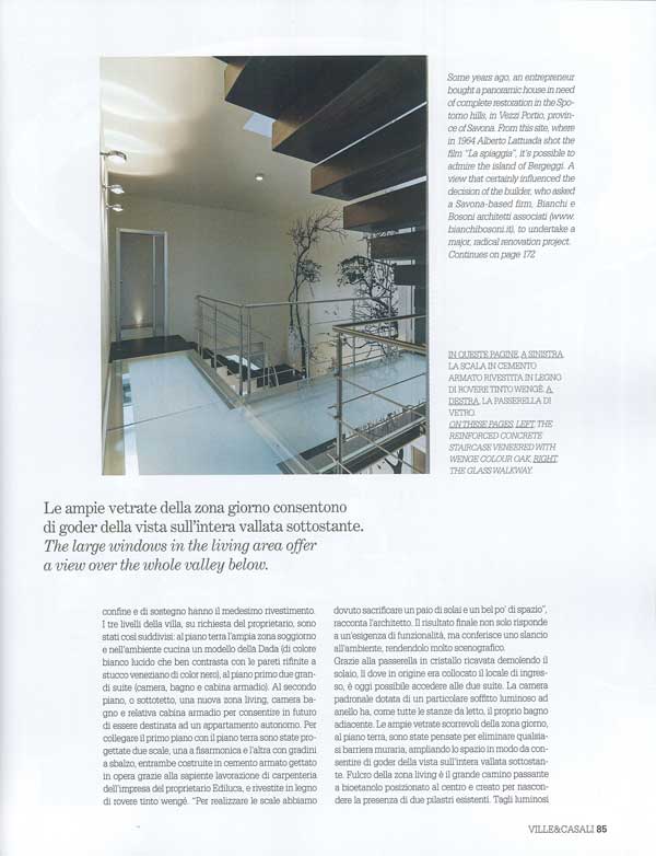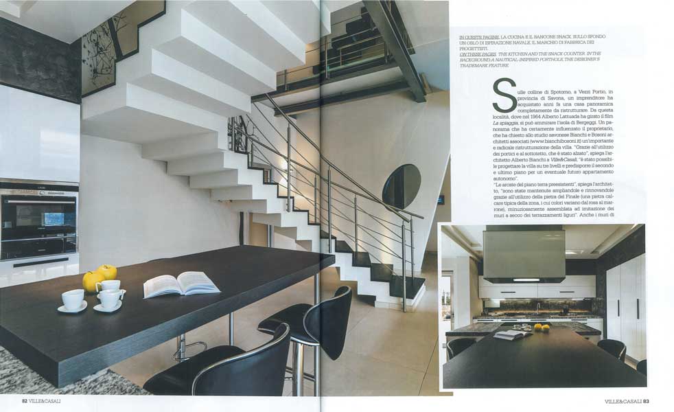<<Sulle Alture di Spotorno gli architetti Bianchi e Bosoni hanno ristrutturato una casa ampliandola in altezza e collegando il primo piano con scale a fisarmonica(….) >>